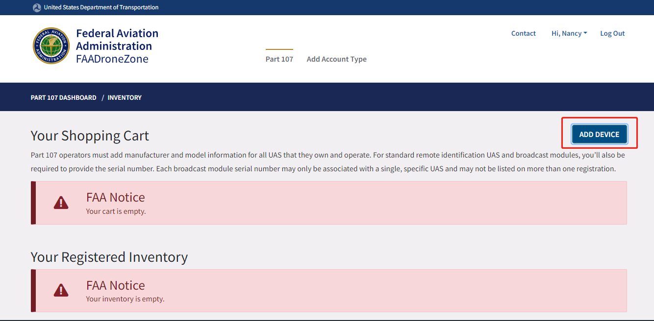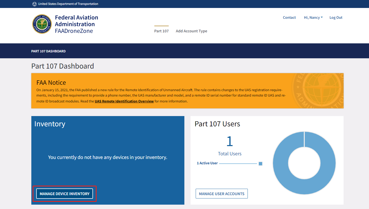 Please log in to the FAA DroneZone first;