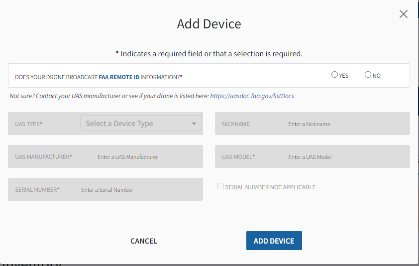 Add drone Remote ID information on the FAA Drone Registration System