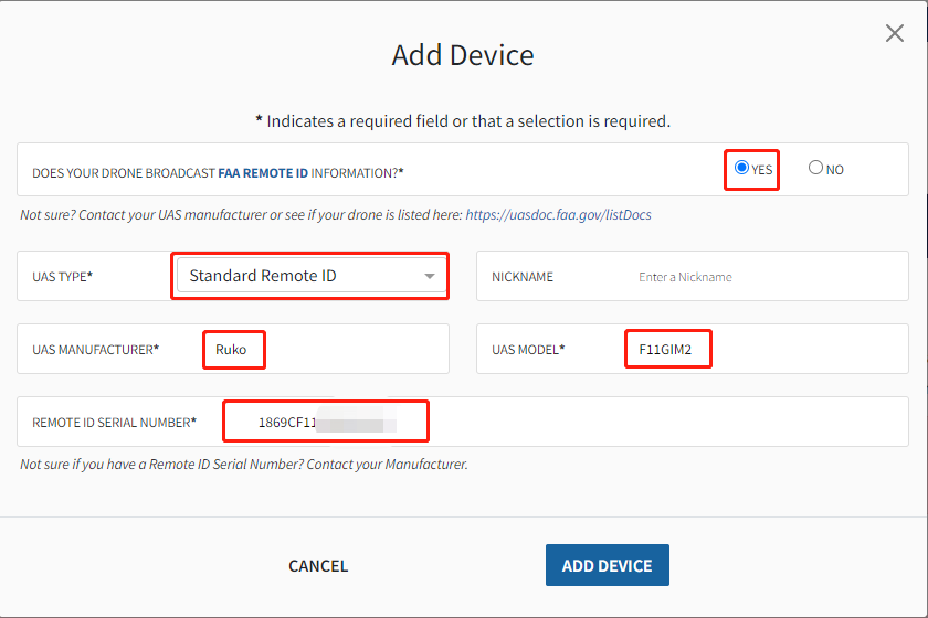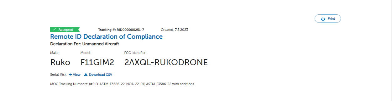 2) If your drone was purchased before September 2023, please contact Ruko to get the Remote ID serial number.